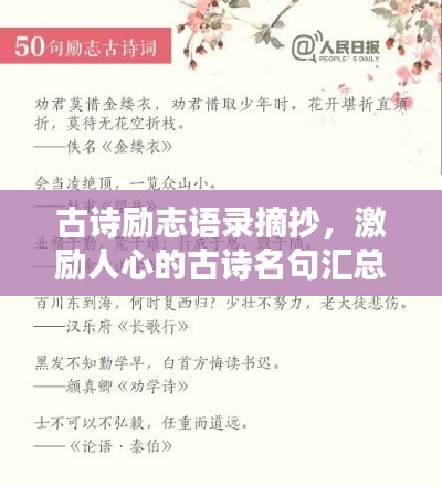 古诗,是中国文化的瑰宝,其中蕴含的哲理、人生经验和情感,历经千年仍然熠熠生辉,在这篇文章中,我们将从古诗中摘抄出那些励志性的语录,希望能为读者带来启示和鼓舞。