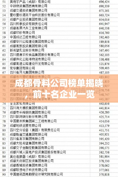 随着建筑行业的蓬勃发展,骨料作为重要的基础建材,其市场需求日益增长,成都,作为西部地区的经济中心,骨料产业亦在这里蓬勃发展,本文将为您介绍成都骨料公司排名前十名,以供参考。第一名:成都XXX骨料有限公司成都XXX骨料...