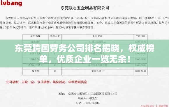 随着全球化的发展,跨国劳务输出已经成为许多地区经济发展的重要一环,东莞作为中国的制造业重镇,跨国劳务公司的业务在这里也蓬勃发展,本文将为您介绍东莞地区的跨国劳务公司排名,帮助您了解这一领域的领先企业。