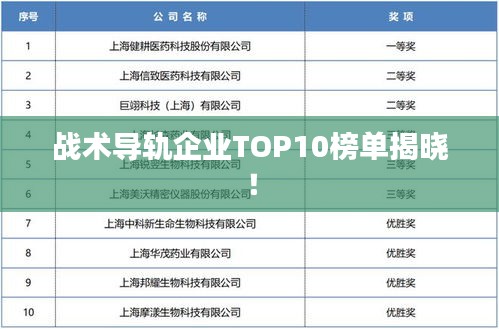 十家企业是战术导轨领域的佼佼者,它们在技术实力、产品质量、服务水平等方面都具有较高的优势,随着军事装备领域的不断发展,这些企业将继续发挥重要作用,为国家的安全和稳定做出贡献,它们也将面临激烈的市场竞争和不断变化的客户需求,需要不断创新和提升自身实力,以保持在行业内的领先地位。